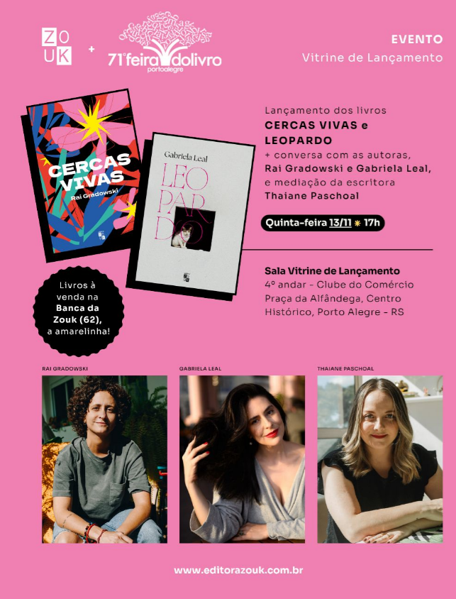 O evento ocorrerá no dia 13 de novembro, às 17h, na Sala Vitrine de Lançamento, e incluirá um bate-papo com Gabriela Leal, mediado por Thaiane Paschoal.