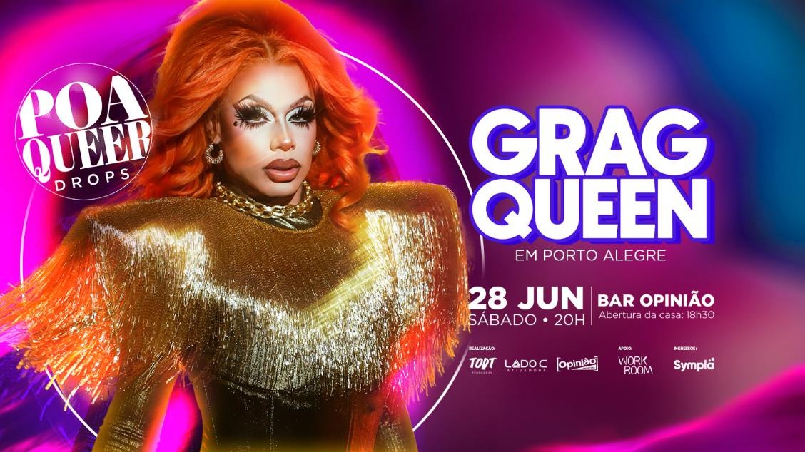 Grag Queen agita Porto Alegre no Dia do Orgulho com uma performance especial no festival Poa Queer Drops, no dia 28 de junho.